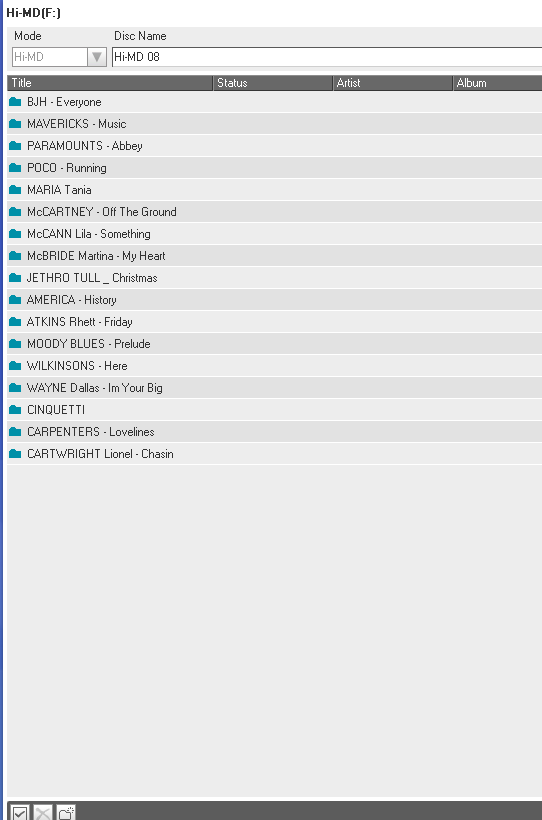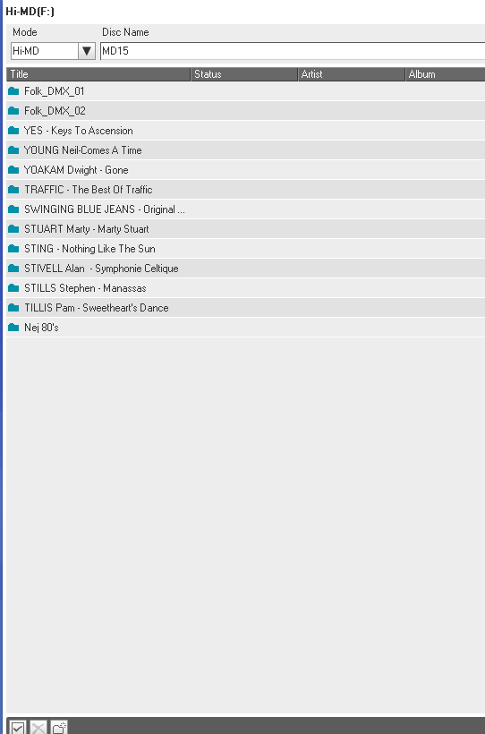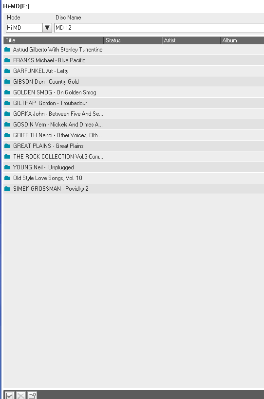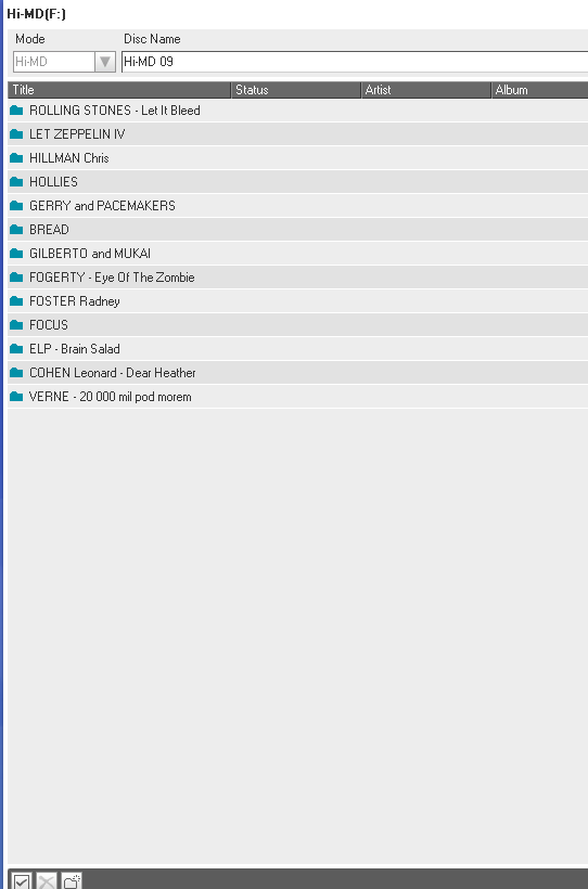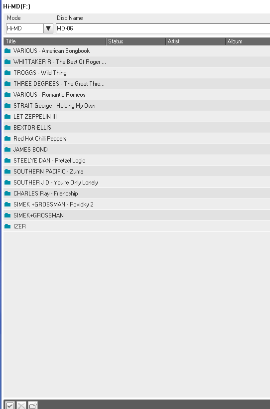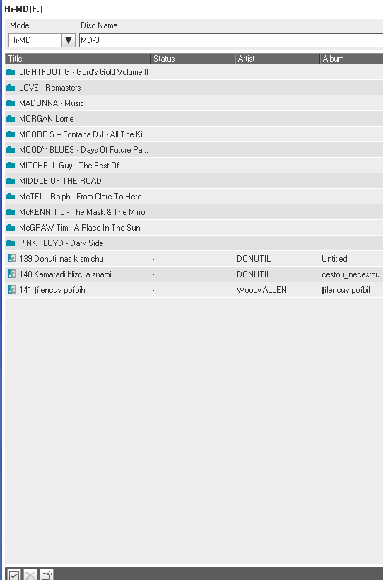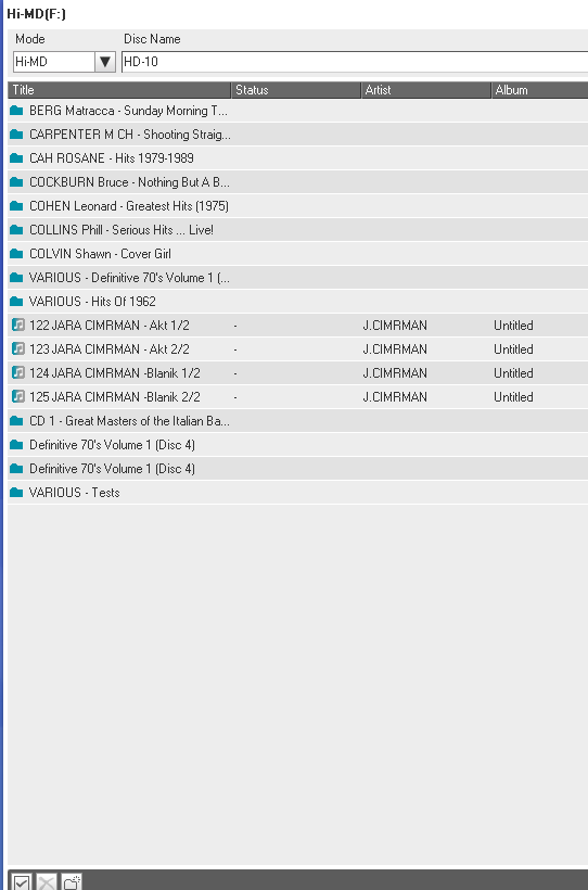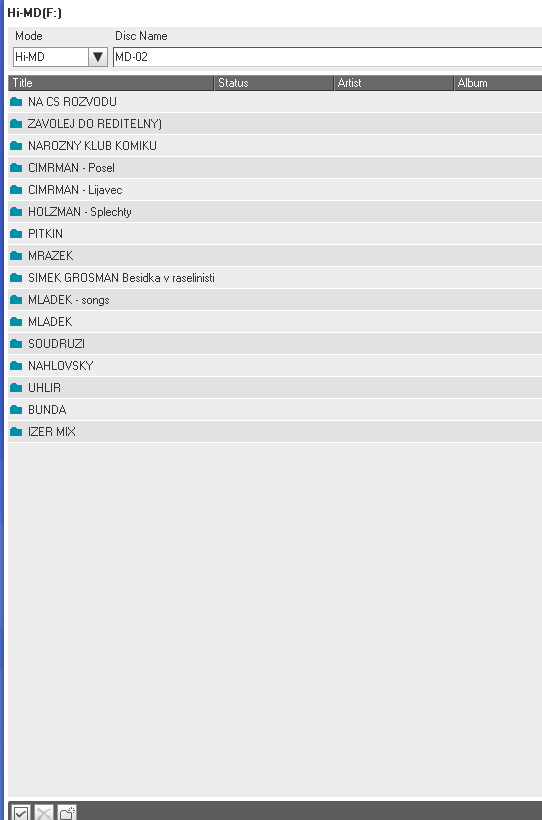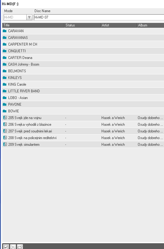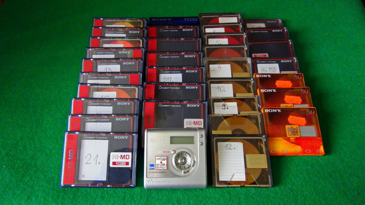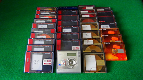 minidisky typu Hi-MD 1GB (u nahrávek značím Hi-MD XX) a Hi-MD 80 min (značím MD XX)