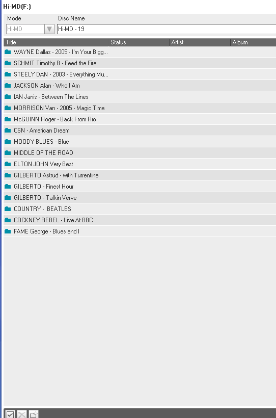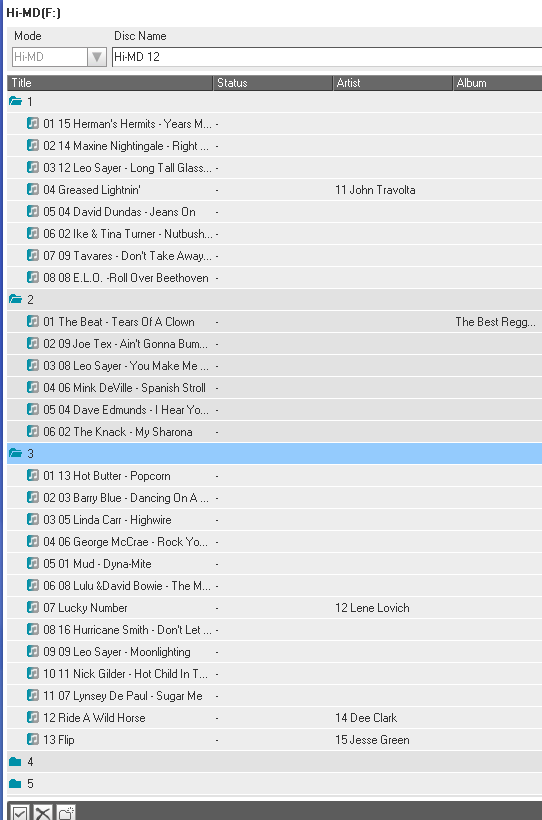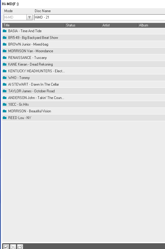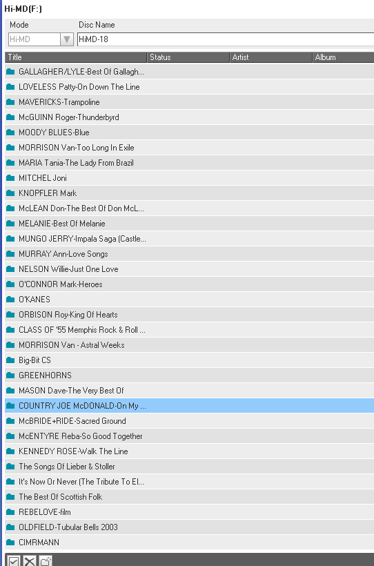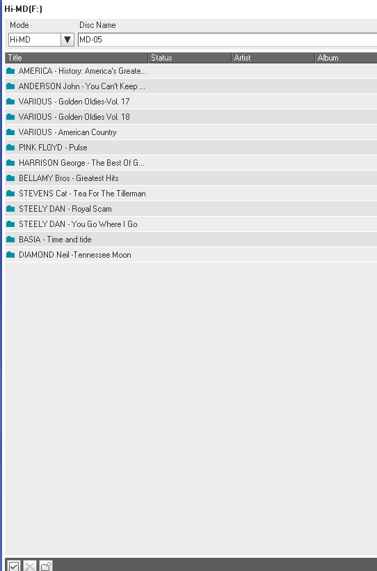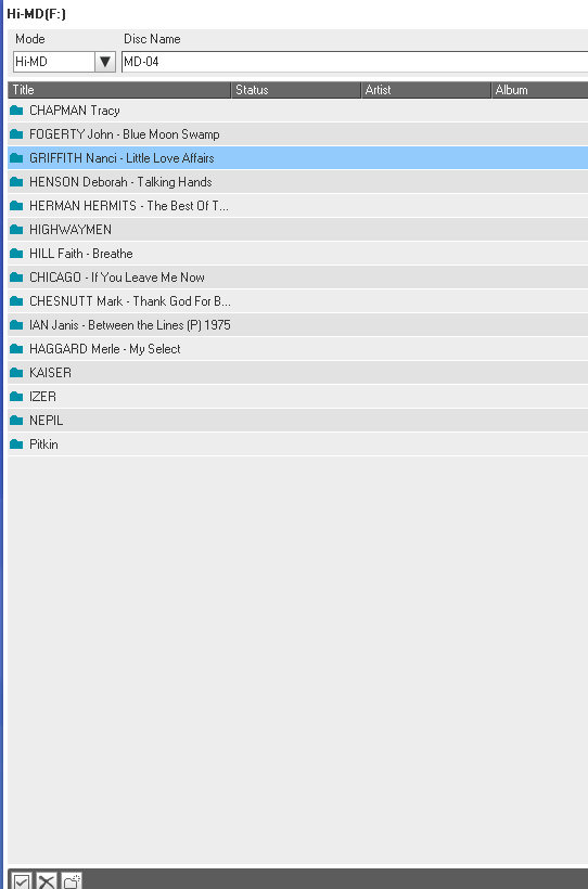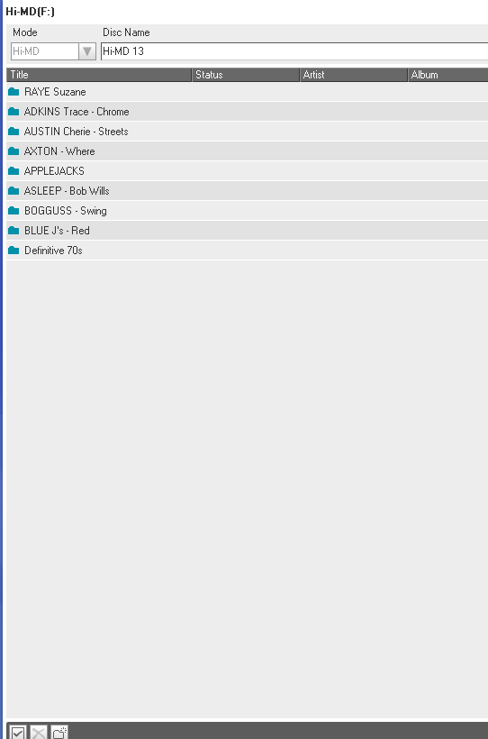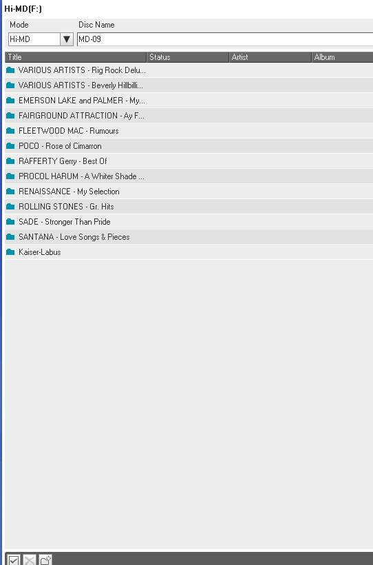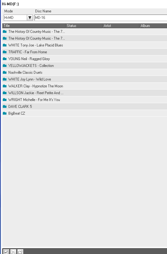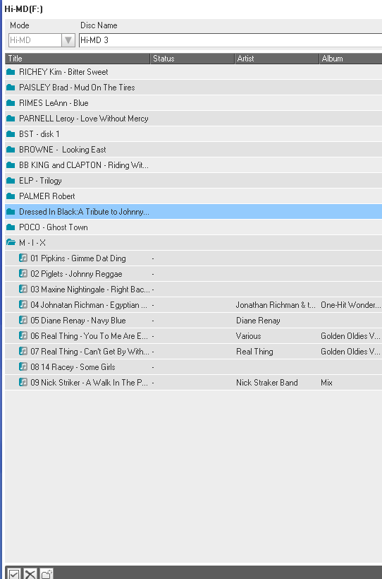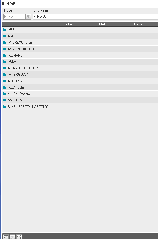 minidisky typu Hi-MD 1GB (u nahrávek značím Hi-MD XX) a Hi-MD 80 min (značím MD XX)